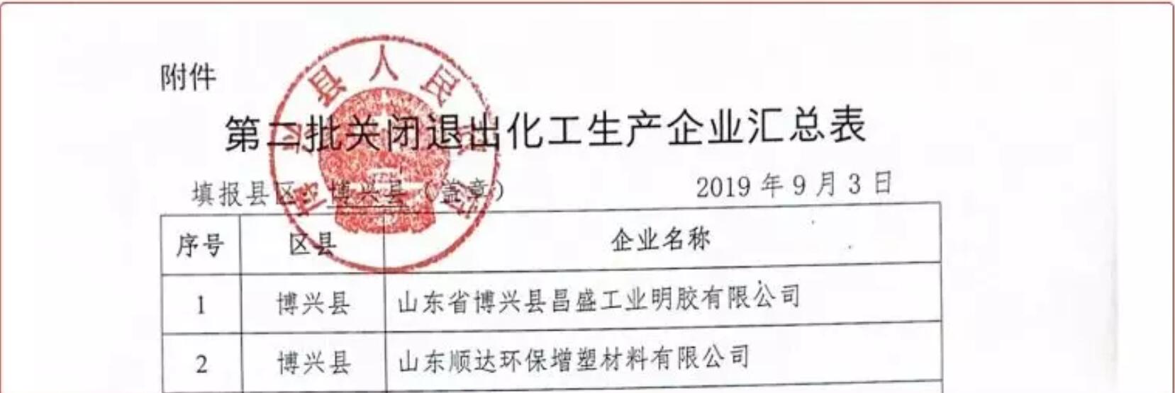官方公示!濱州這2家化工企業將關閉退出!